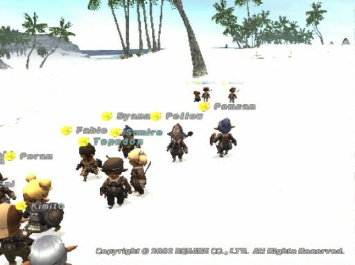 集合場所はウィンダス水の区、料理ギルド前。目的地はラテーヌ高原の湖畔。総勢14名。