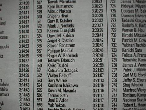 翌日発行される全完走者の記録を掲載した新聞。589位に載っています。