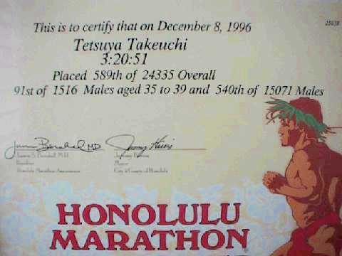 すべての人が完走可能なホノルルマラソンはマラソンのお祭りです。1995,1996年と2年連続で参加しました。
