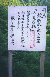 釣り人がどう思われているか? これはある堰堤工事をめぐるフィクション である 「釣りをしている人が多いけど、大丈夫か?」 「関係ないですよ。連中は釣れればいいんだ。それもとにかくデカイのを 釣りたがってます。だから工事が終わったら、水が溜まるところにごってりと デカイのを放流してやりゃいいんです。それで釣り人はカタがつきます。」 「しかし、こんなところで魚が棲めるようになるのかな?」 「さあね〜。でも関係ないですよ。どうせ奴らはみんな食っちまうんだから いなくなると騒ぐから、時々またブチ込んでやればいいんです。配合飼料を たんまり食わせてデカイのを作っといて下さい。イワナなんか喜びますよ」 「そうかなるほど。釣り人はすぐにカタがつくな!」 最悪なのが上の写真 ある川で、自然保護団体が釣り人をロックアウトした時 の名残りの看板である たしかに、この河原の状況は目に余るものがあった しかもここは水源地 最悪の場合、釣りは自然破壊行為のレッテルを貼られ 釣り人は日陰者になる! ボランティア放流は、昔も今も、心ある人々の手で続けられている やったろう!という人 下で釣って上で放す、という手法はあまり問題がない と思うが、発眼卵や稚魚の場合、注意する必要がありそうだ 各県にある水産試験場が、快く相談に乗ってくれると思う 訪ねてみよう! |