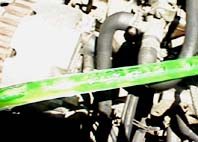 外したホースを戻して、規定濃度のクーラントをラジエーターの給水口から入れます.