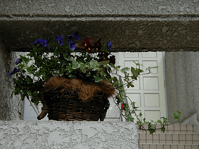 ![]() バスケットにヤシガラマットを敷きアイビーとパンジーを。(上) |